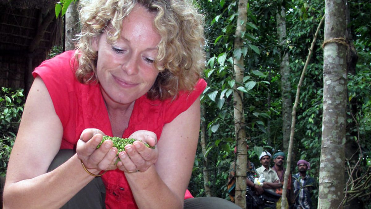 Kate Humble does the pepper dance to shake the berries from their stalk.