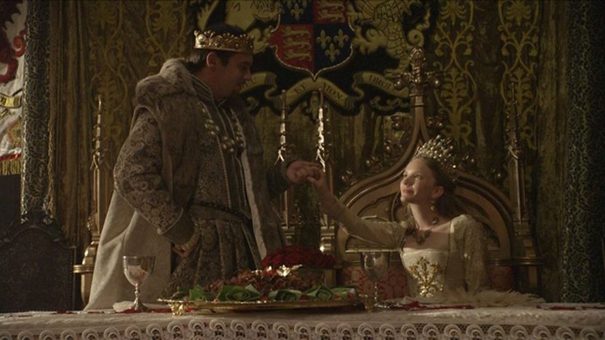Queen Katherine is introduced to the court by her enamoured new husband, King Henry VIII.