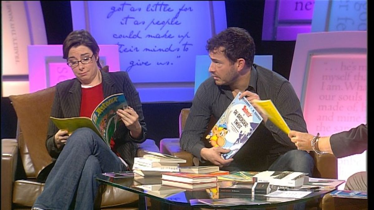 Giles Coren brought his own Flemish versions of Asterix books into the studio and both Giles and Sue Perkins try reading these aloud, much to the bemusement of Anne and the audience.