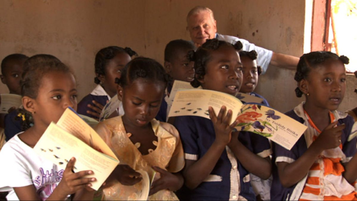 Emma and the team joined David Attenborough to meet Alison as she introduced her newest book, Bitika the Mouse Lemur, to Bereboka school in the west of the Island.