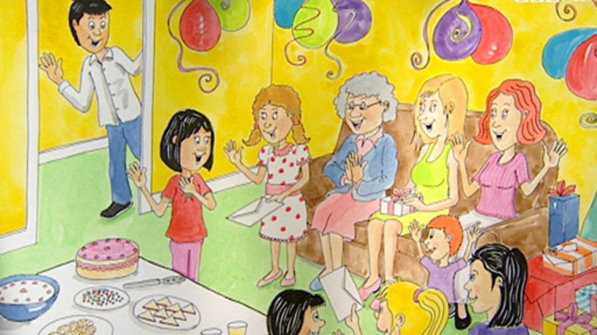Gaelic language fun, songs, stories and adventures in a magical land. A class from Nairn show The Little People how to wrap presents and play games with presents.