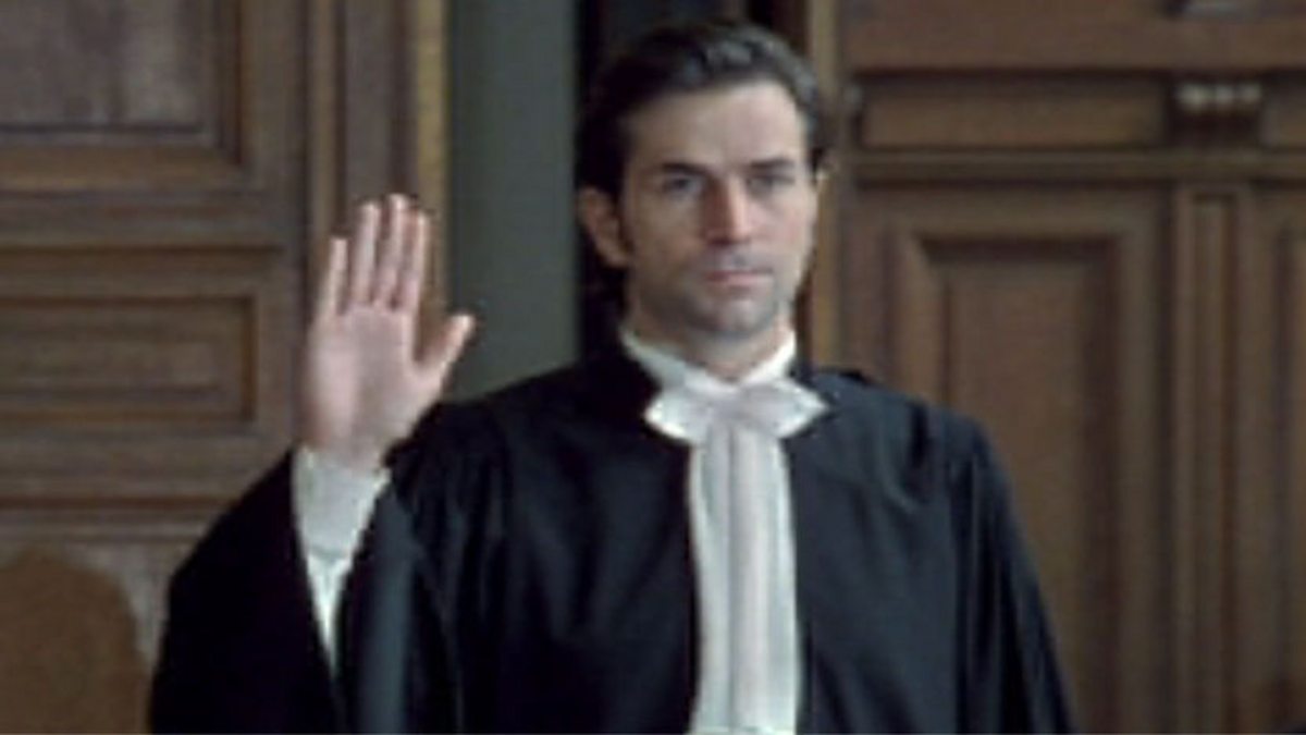 With seconds to spare before his swearing in, Lawyer Josephine Karlsson brings Deputy Prosecutor Pierre Clement her gown. With no time to get his own Pierre has no choice but to wear the gown and take the barrister's oath.