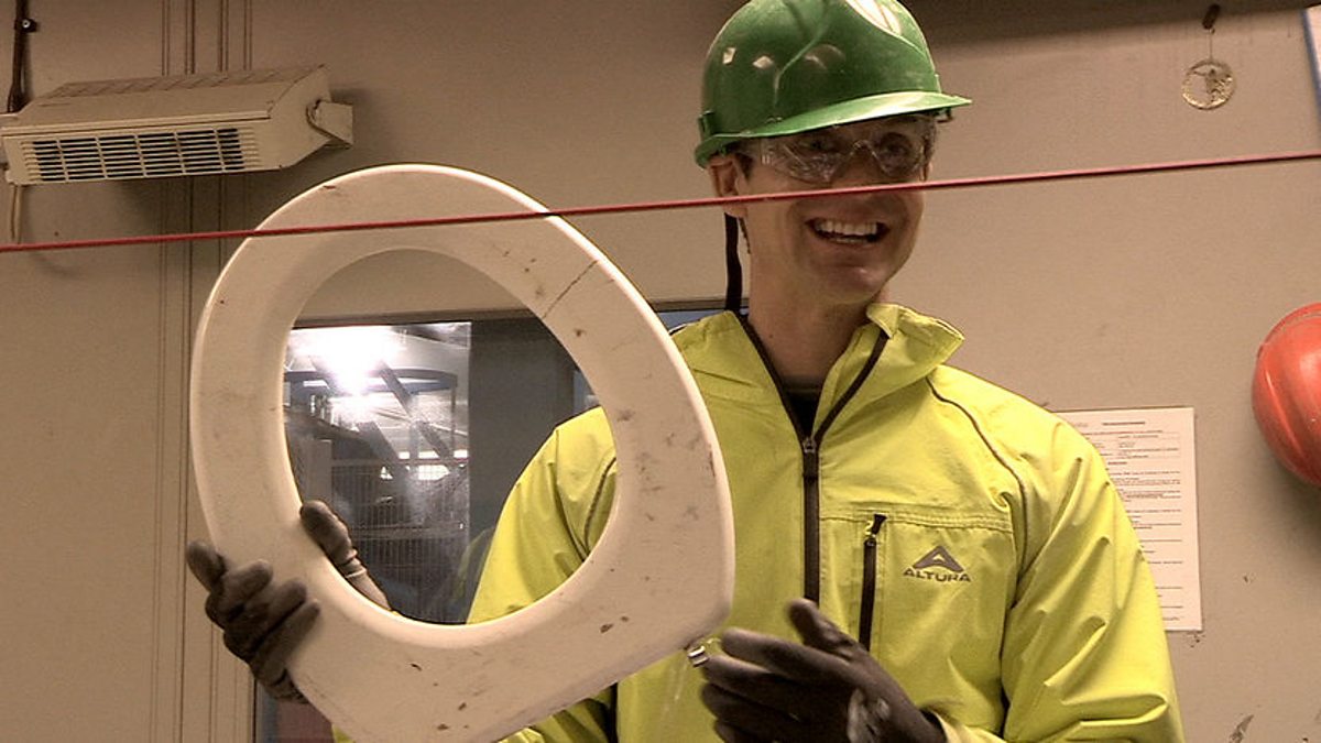Modern recycling plants can cope with much, but not toilet seats, nappies or cuddly toys. In what looks like a twisted version of The Generation Game, Jem mans the conveyor belt to find out what you should and shouldn't put in your recycle bin. Didn't he do well?