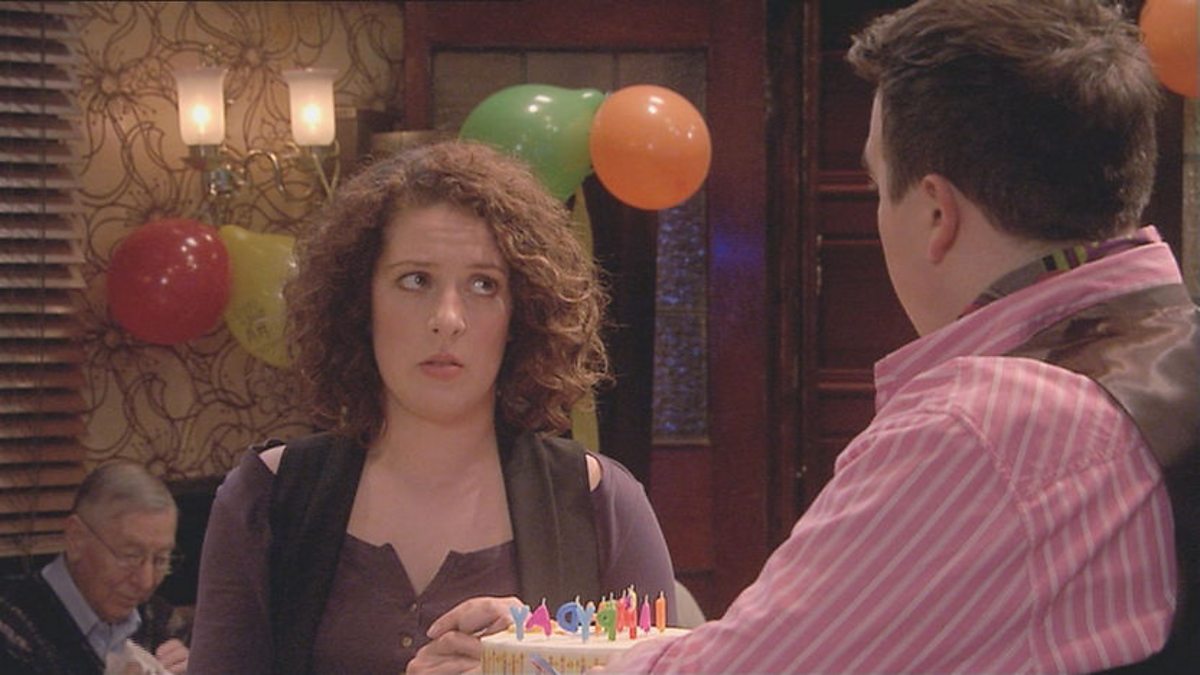 Donna (Natalie Casey) is explaining to a 'flouncing' Tim (Luke Gell) why she still hasn’t told Gaz her secret, and is interrupted by a mysterious rude man.