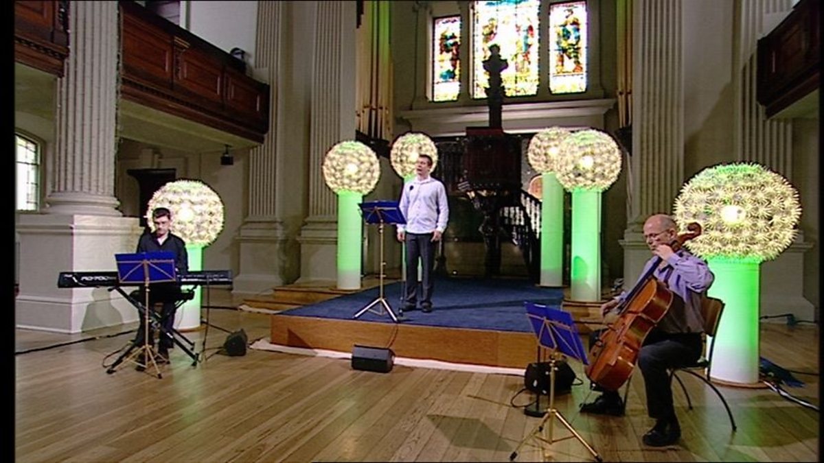 Iain MacFhionghain le measgachadh de laoidhean, sailm agus sgeulachdan pearsanta mu chreideamh. Bidh Seumas Greumach a' seinn Seo an Gaol mar Mheud na Mara.