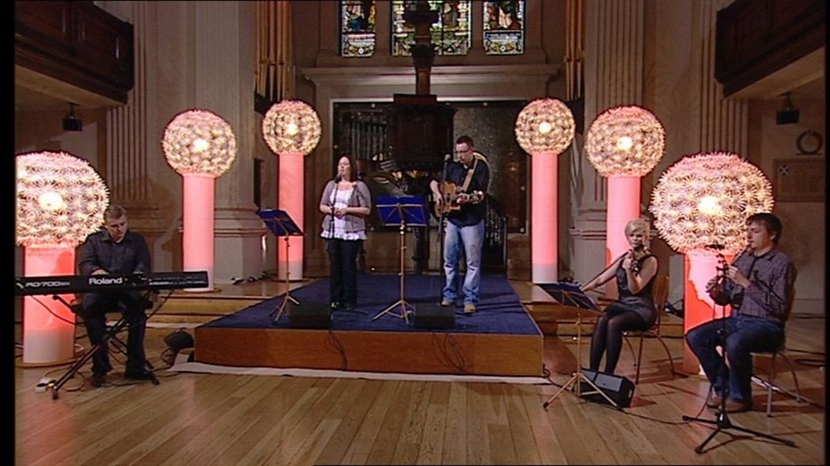 Iain MacFhionghain le measgachadh de laoidhean, sailm agus sgeulachdan pearsanta mu chreideamh. Sìneag Nic an t-Saoir agus Norrie MacÌomhair a' seinn Èiridh Bileag Ùr Ghorm.