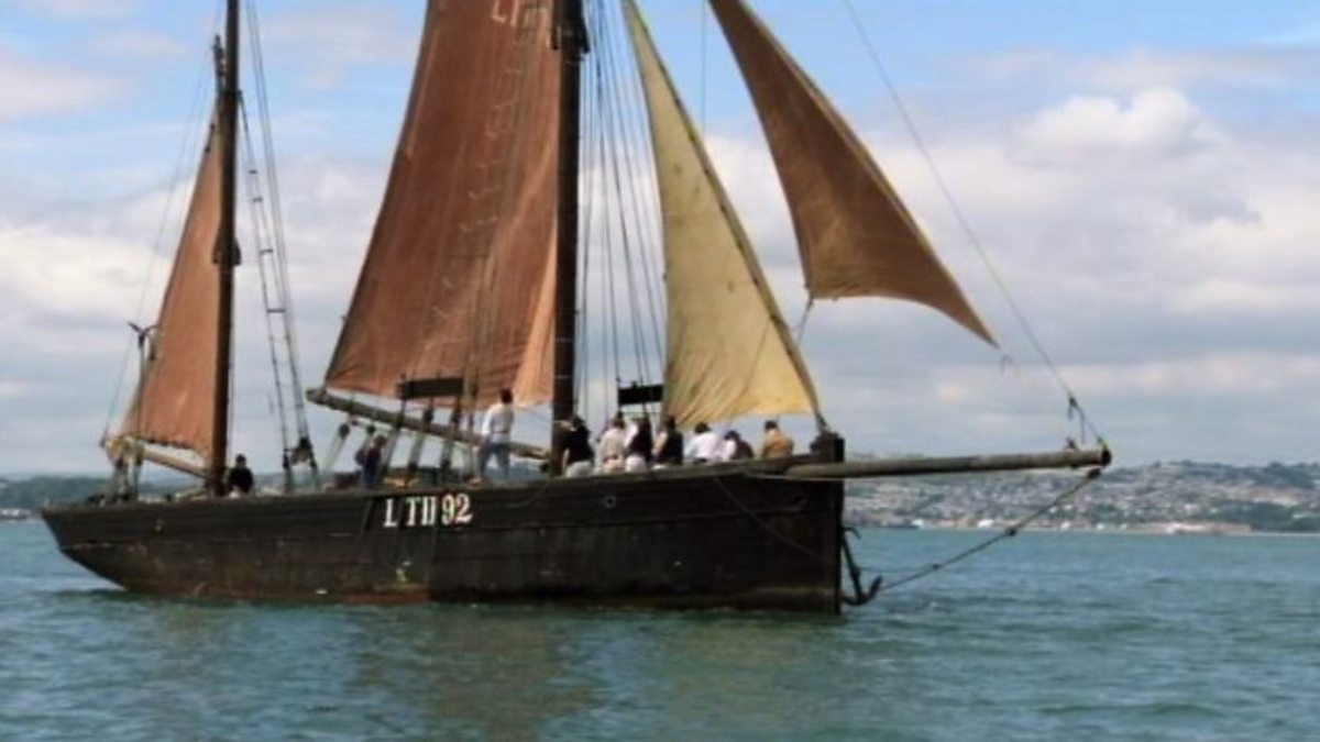 The team's journey continues around the stunning shores of Devon and Cornwall. Nick Crane is on board one of the last remaining Brixham trawlers.
