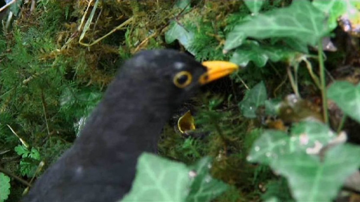 Springwatch catches a blackbird apparently bringing food to a wood warbler nest. Kate Humble and Chris Packham discuss whether it's confused - or planning its main course?