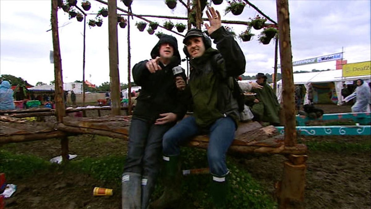 Shaun Keaveny and Matt Everitt stomp through the mud to Glastonbury's legendary Meeting Point.