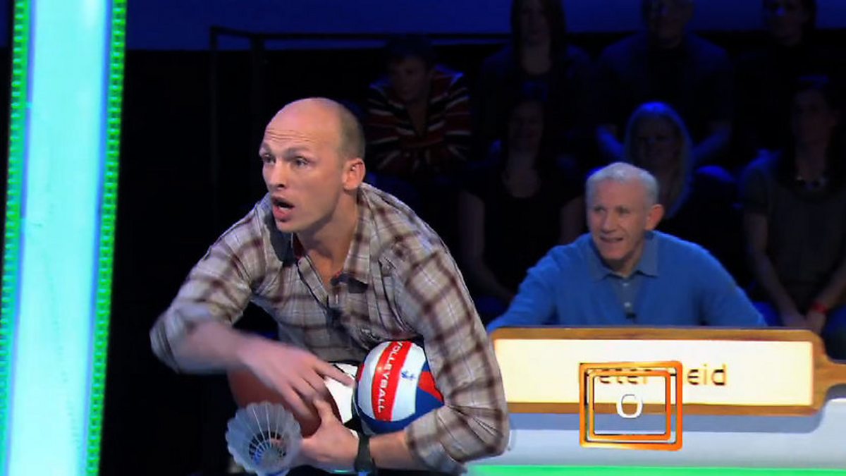 Matt struggles with some balls in a Sprint Finish. The regulars are joined by former World Champion boxer Barry McGuigan, Olympic figure skating champion Robin Cousins, World Champion snooker player Ken Doherty and England football international Peter Reid.