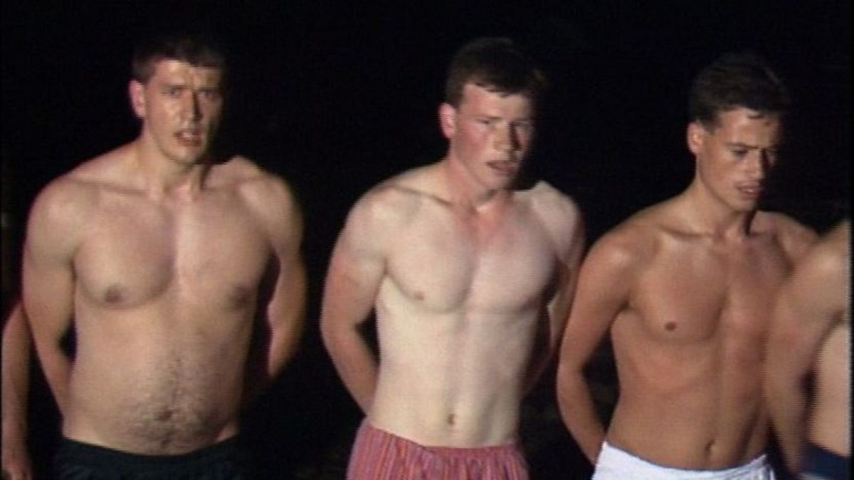 A group of new recruits to the Royal Marines officer selection process experience an early morning wake up call and physical challenge as part of their induction.