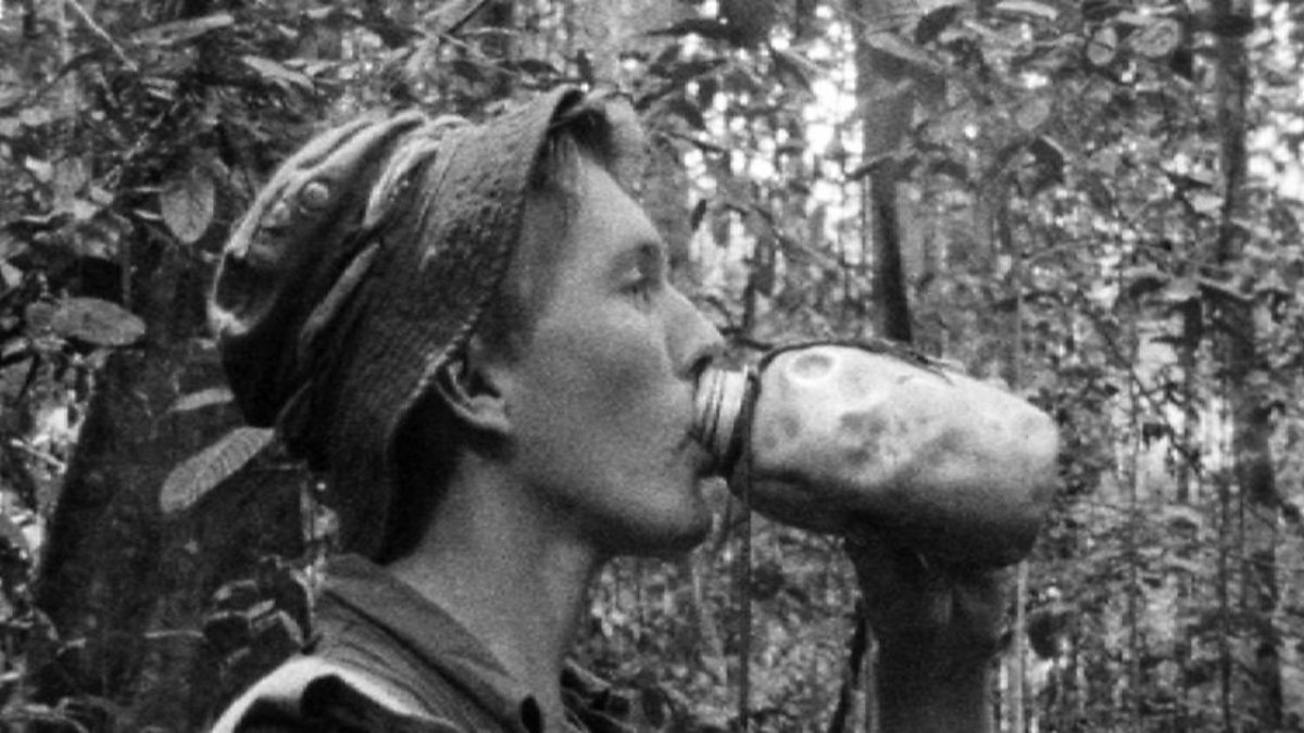The men are on patrol in Borneo. Every hour they have a ten minute break. It is during this time that they get rid of leeches by using a cigarette.