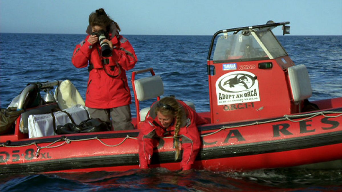 Scientist Ingrid Visser has been studying the New Zealand killer whales for many years and knows most of the individuals by sight. Some of her favourites are Funky Monkey, five year old Pirate and her mother Salty.