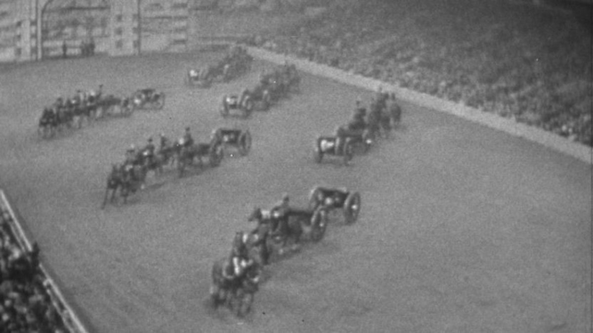Sixteen of the men from The King's Troop Royal Horse Artillery perform intricate moanouevres in the Royal Tournament.