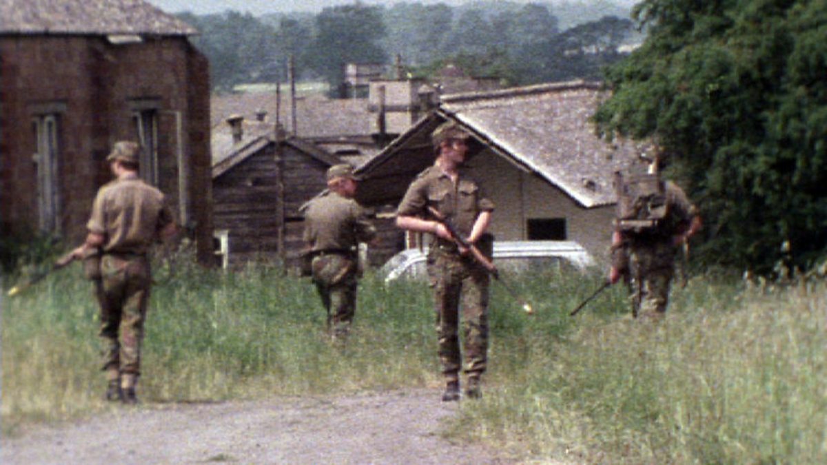 The recruits act out a breakdown of civil order in Britain, an exercise in internal security techniques lasting one weekend at a deserted army camp in Wiltshire.