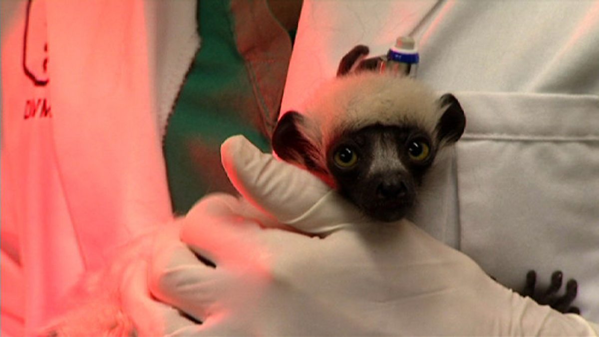 A baby Coquerel's sifaka worries the Duke lemur centre's vets.