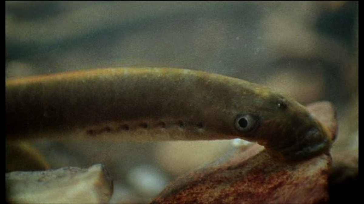 Presenters Martin Hughes-Games and Chris Packham go electro fishing for brook lamprey.