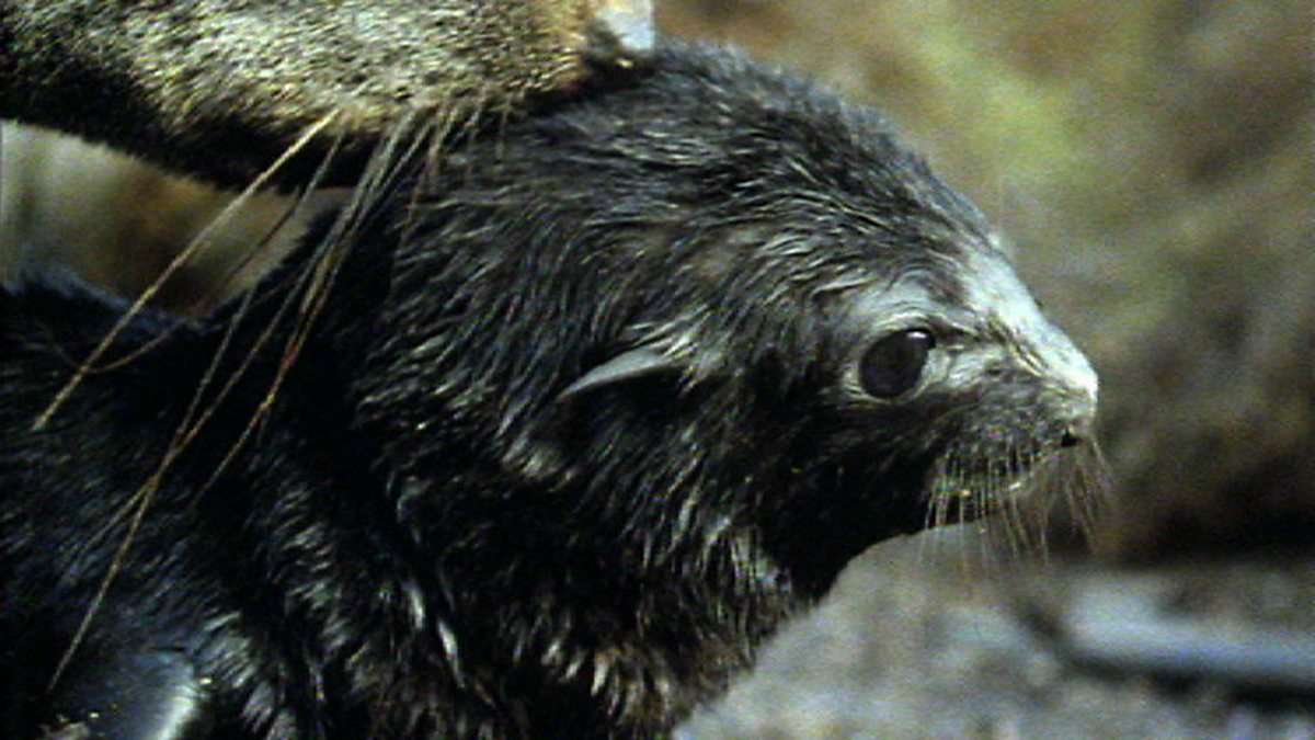 In November, Antarctic fur seals return to South Georgia to breed. Bulls claim a territory on the beach and defend it. David Attenborough approaches a bull, carrying a stick in case he has to fend it off. The bulls have sharp teeth and can be aggressive. In two weeks the females will arrive, and David couldn't walk here. A lapsed time shot of the whole beach shows it gradually filling up with more than 100,000 seals. Each bull rules a territory of 30 square metres which contains about 12 females. We can't see the borders but the bulls know where they are and won't fight unless another male trespasses. The females prefer the territories near the high water mark. By December more than a million Antarctic fur seals, 95 per cent of the world population has arrived here to breed. As a female gives birth, skuas fight over the afterbirth. She picks up her wobbly newborn pup. Older pups are suckling, play fighting and rolling about. The males won't fight for territory until they are eight years old.