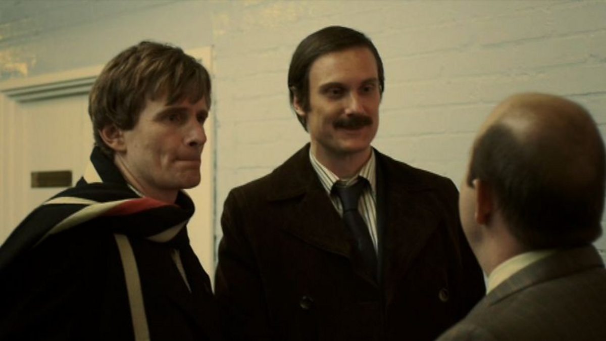 Michael Palin and John Cleese arrive at the BBC and discuss their imminent appearance on Friday Night Saturday Morning to defend their film Life of Brian against charges of blasphemy.