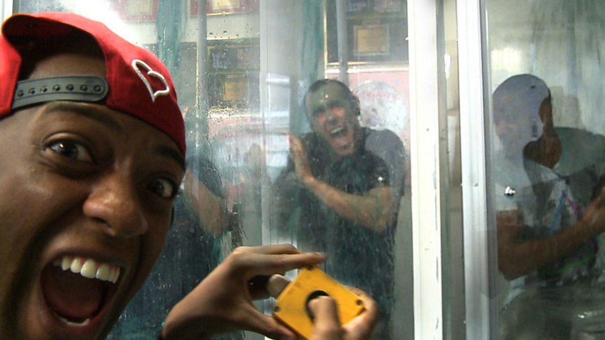 Aled, and JB from JLS, both cop a nasty gunging when the rest of JLS take charge of the controls.