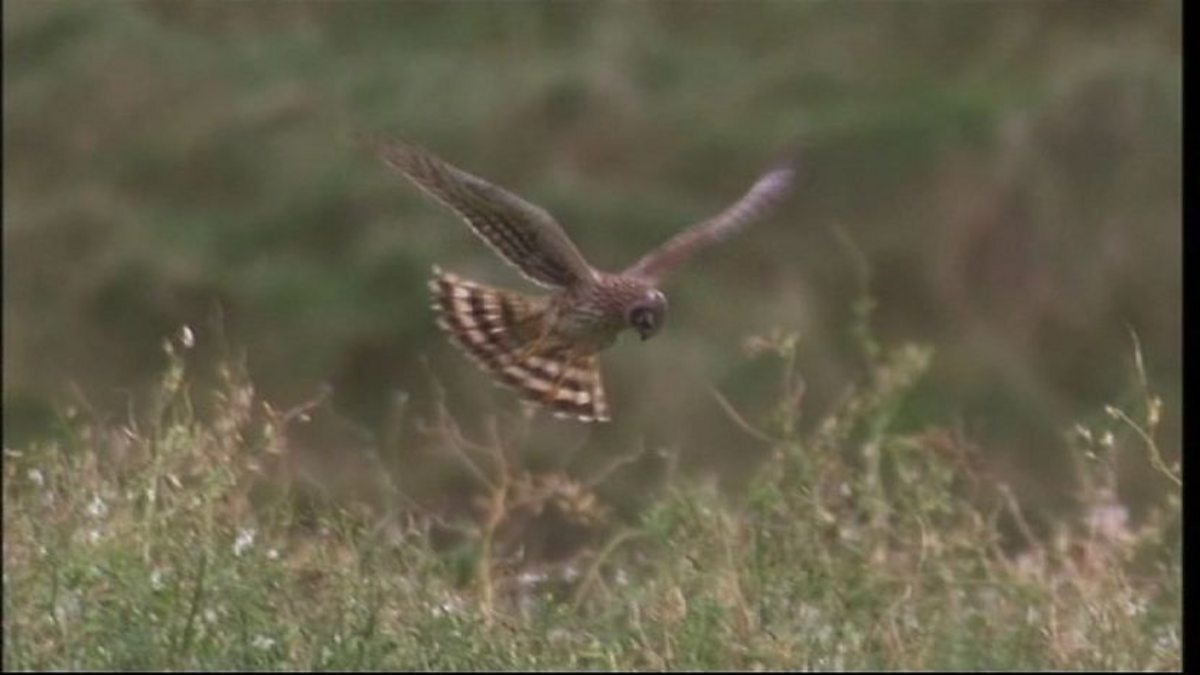 Chris Packham watches a flock of twites and a hungry hen harrier.