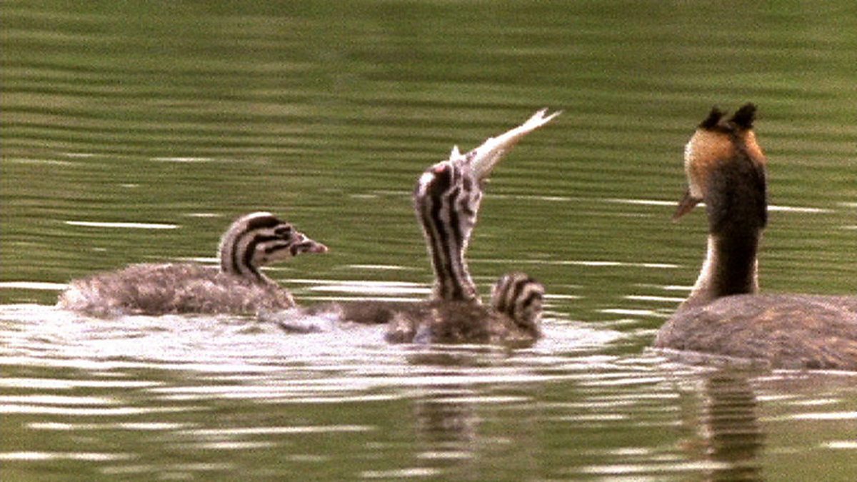 Great crested grebes feed feathers to their chicks.