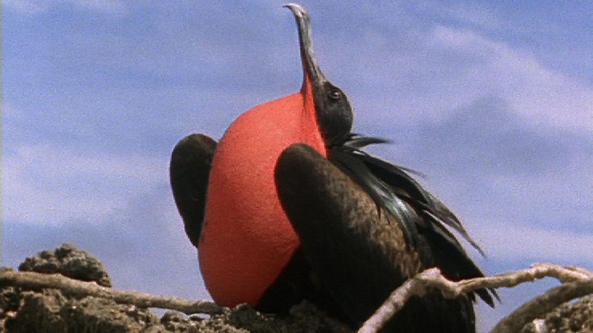 Male frigate birds, for example, use an inconspicuous shrivelled patch of red skin on their throat as a visual signal. They inflate it into a bright red throat balloon - a feat which can take around 20 minutes to achieve.