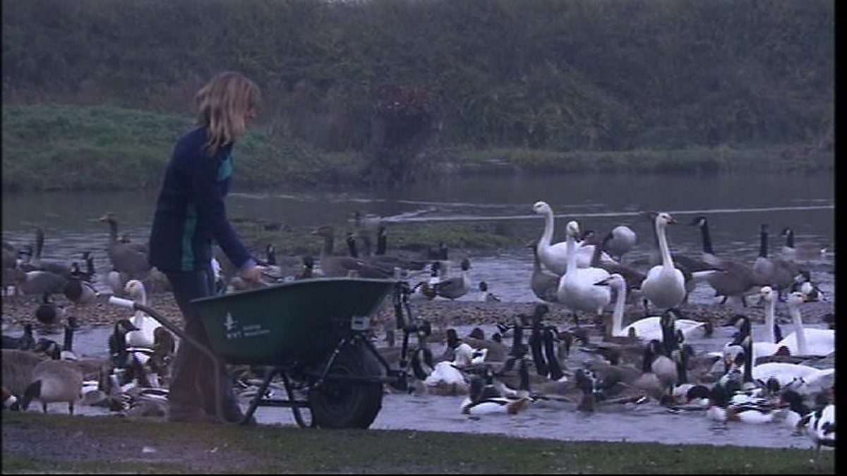 Presenter Michaela Strachan gets up close to the Bewick's swans of Slimbridge.