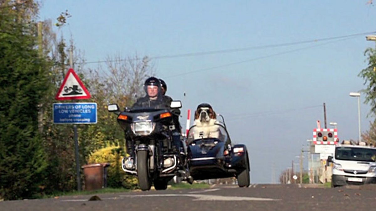 A dog rides around the countryside in a sidecar as Big Weekend takes place miles away.