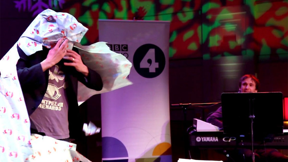 To open the festive final episode of his series, the comedian Mark Watson was "wrapped" into a present by Tim Key and Tom Basden.