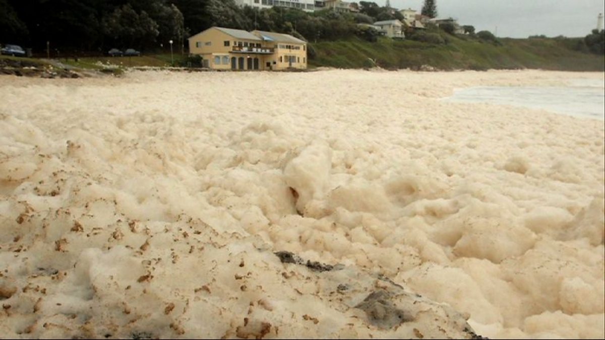 The sea off the Australian coastline turns into a frothy cappuccino.