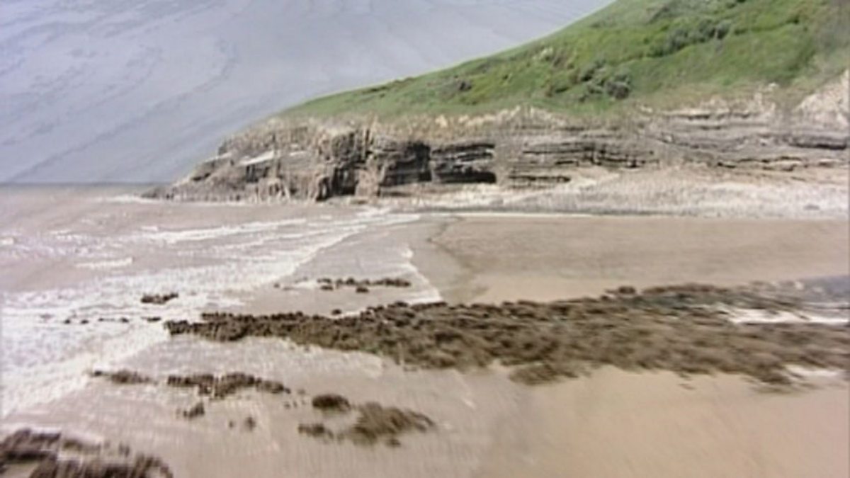 The Glamorgan Heritage Coast filmed from the air - from Nash point to Dunraven Bay and Southerndown. Shows coastal features, highlighting the effects of coastal erosion.