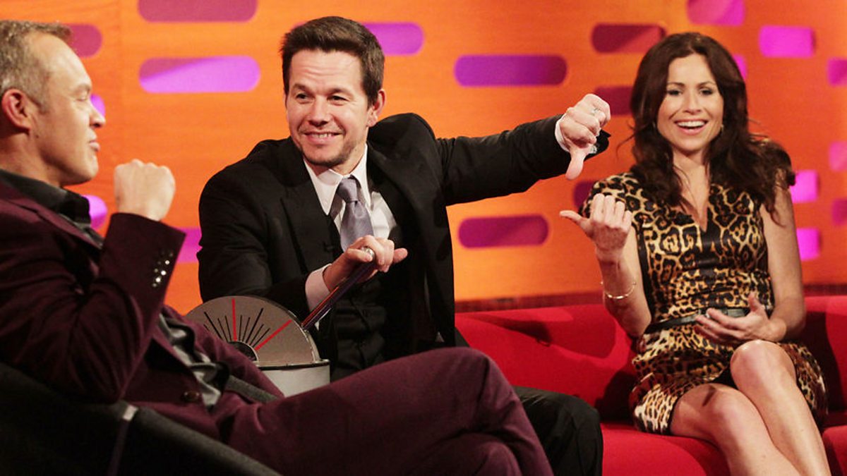 Actor Mark Wahlberg gets to pull the lever on members of the audience telling stories from the red chair.