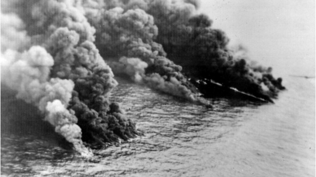 The air force tried to burn up the oil by dropping bombs on it.