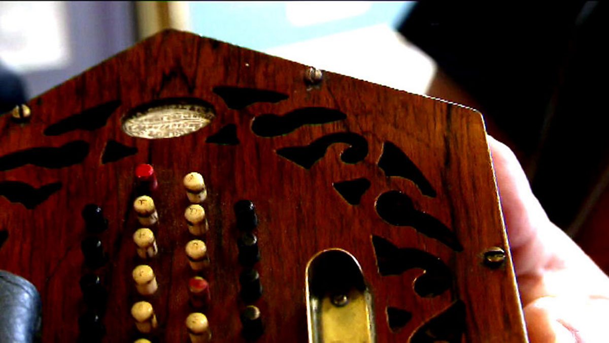 On today's journey from Darlington to Doncaster expert Philip Serrell plays the tough negotiator card on Sandy in Rudby House. He picks a pristine squeeze box & cane picnic hamper to take to auction at the end of the day.