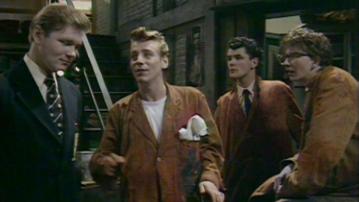 The Slab Boys show a new graduate employee around the workings of the carpet factory in Paisley.