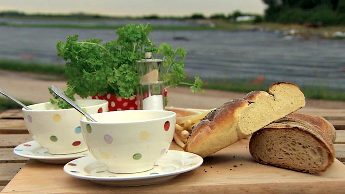 Si and Dave make soup from white asparagus, the 'Beluga caviar of the vegetable world'. They prepare it in a field and consume it heartily with bread baked the day before.