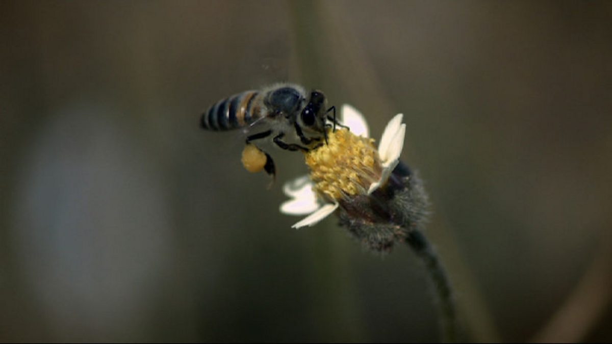 Forager honeybees visit 2000 flowers a day to collect pollen and nectar. They return to the hive and perform a waggle dance so that other foragers can find their source of food - each shake and turn shows distance and direction.