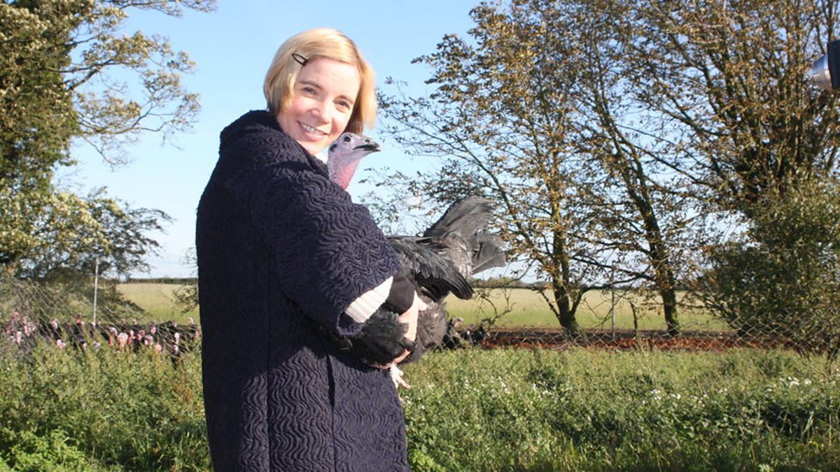 Lucy Worsley gets more than she bargained for when plucking a Norfolk black turkey. Norfolk historically leads Britain in poultry production because the birds can feed on grain left over from the rich arable harvest. Hundreds of turkeys were walked to London for the Christmas markets.