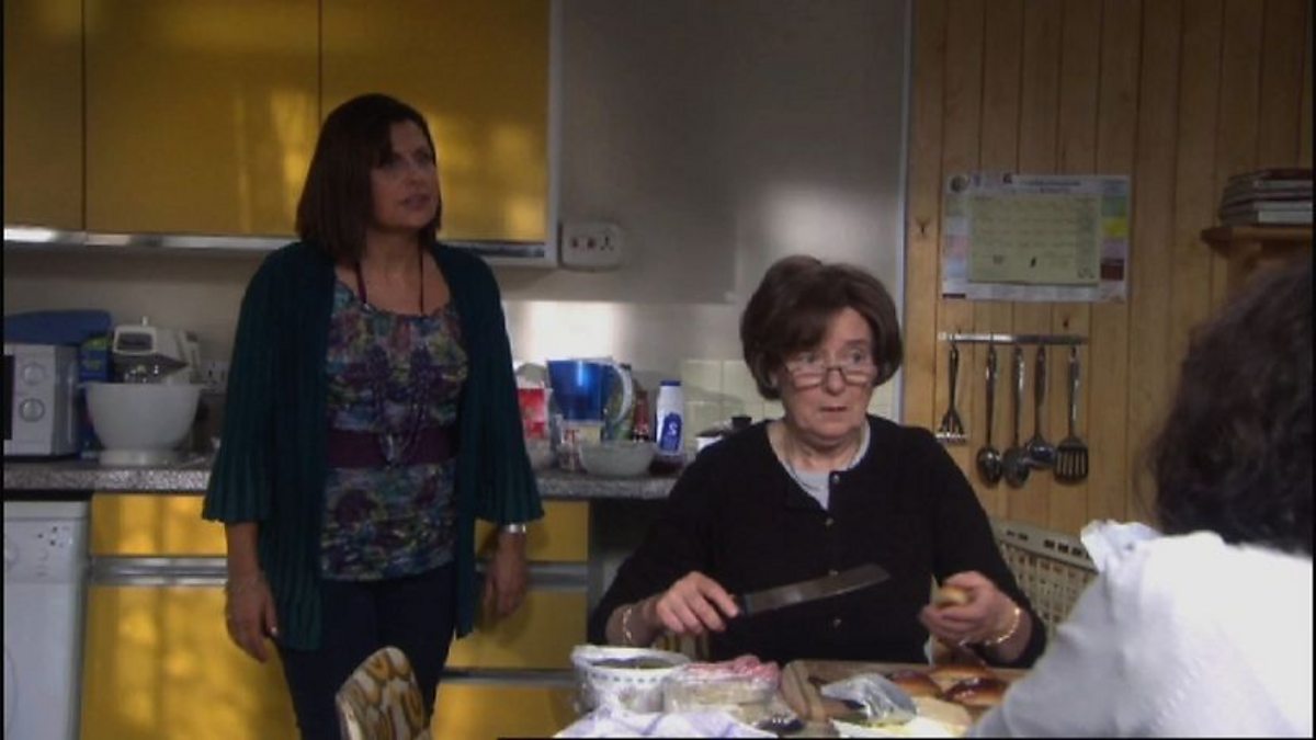 Grandma, Liz and Tanya are busy preparing lunch. While Simon's interesting young visitor appears in the kitchen, a heated row erupts between Tanya and Liz about their father's funeral.