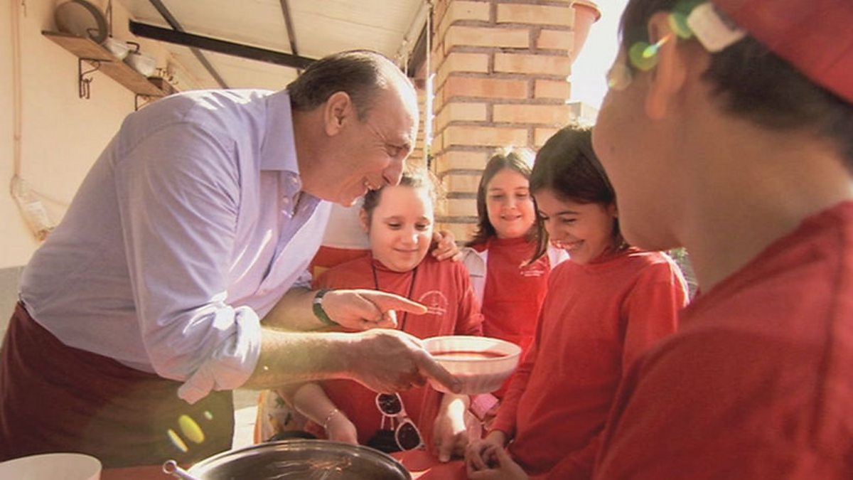 Gennaro teaches the local children how to make his favourite childhood pudding - chocolate and fresh pig's blood pudding.