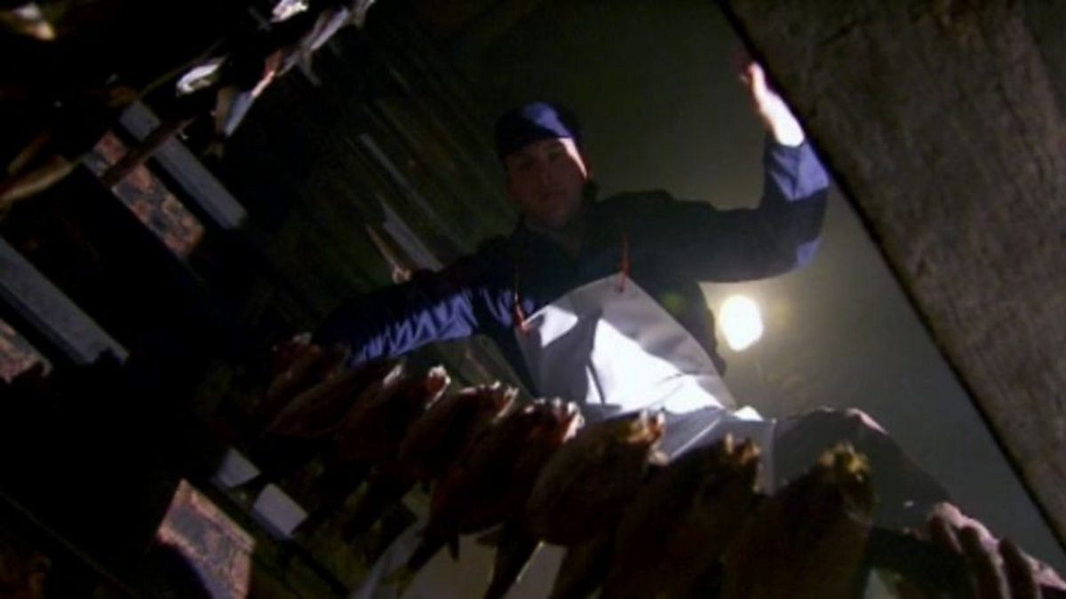 Alex Langlands learns how to turn herring into kippers with father and son team Jeffrey and George Lawrie. The clearances forced Highlanders to the coast. By 1890 three quarters of crofters in the West of Scotland relied on fishing for their main income. Herring were known as ‘silver darlings’.