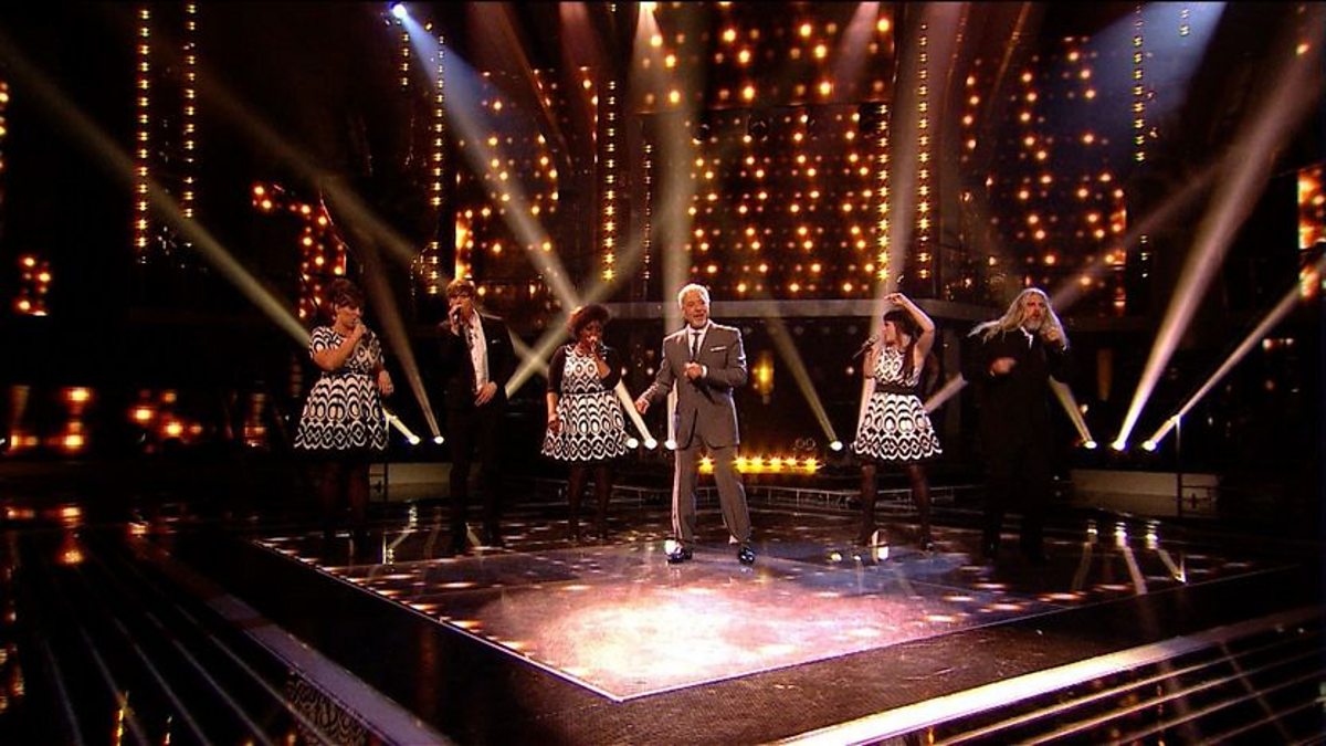 Performing 'Hit The Road Jack', Sir Tom joins Adam Isaac, Leanne Mitchell, Matt and Sueleen and Ruth Brown on stage.