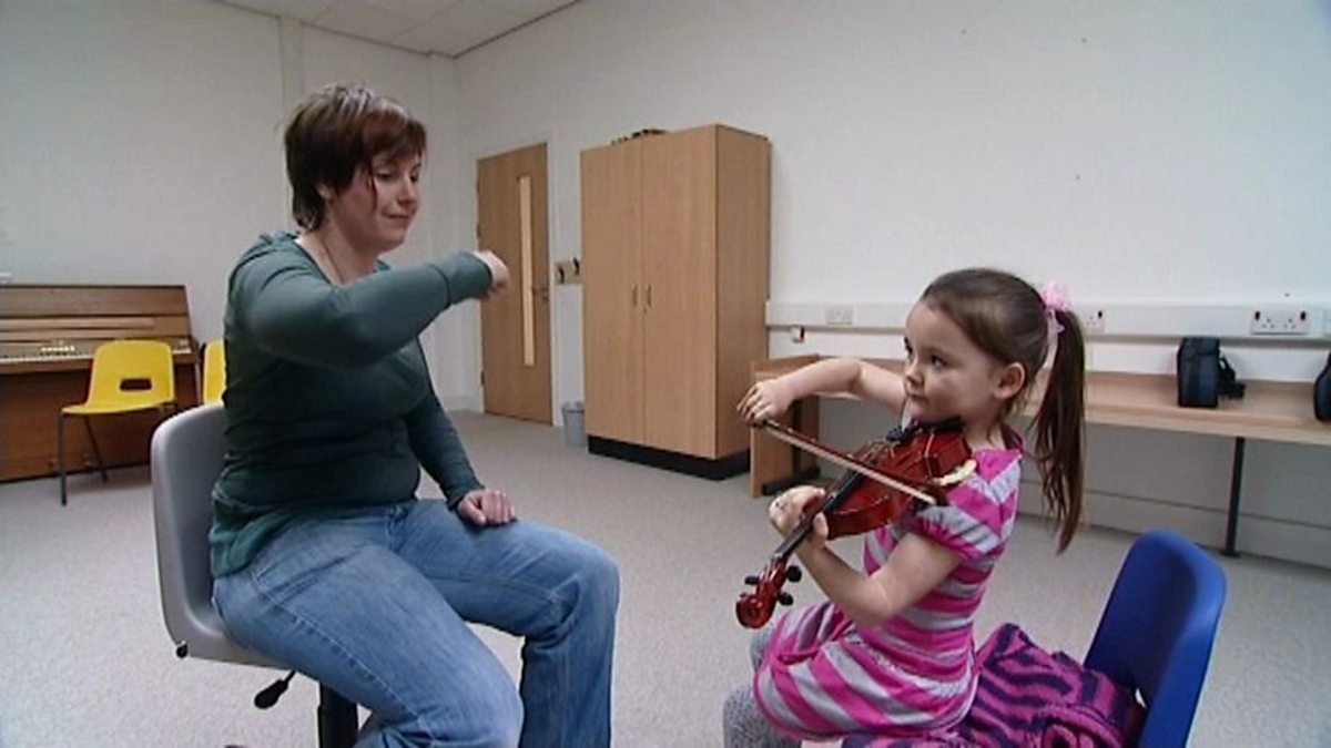As the children’s interest in music grows, tutors give one to one lessons to the budding young musicians.