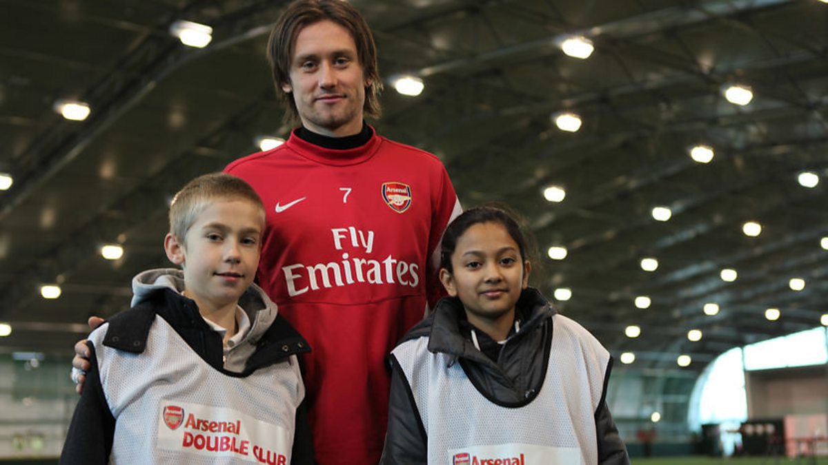 Two football-mad schoolchildren are taken to Arsenal’s training ground to learn about football and maths. They meet Arsenal player Tomas Rosicky and are set a fun maths challenge related to football. The two children have ten shots at scoring goals. The challenge is to work out what percentage of shots went in. Having completed the challenge, the two children are presented with medals by Tomas.