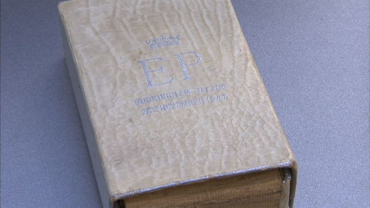 Marc Allum meets a lady with a much treasured piece of cake from the Queen's wedding in 1947.