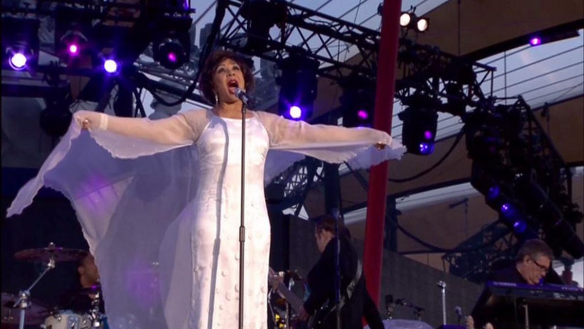 Dame Shirley Bassey performs "Diamonds Are Forever" at the Queen's Diamond Jubilee Concert from Buckingham Palace.