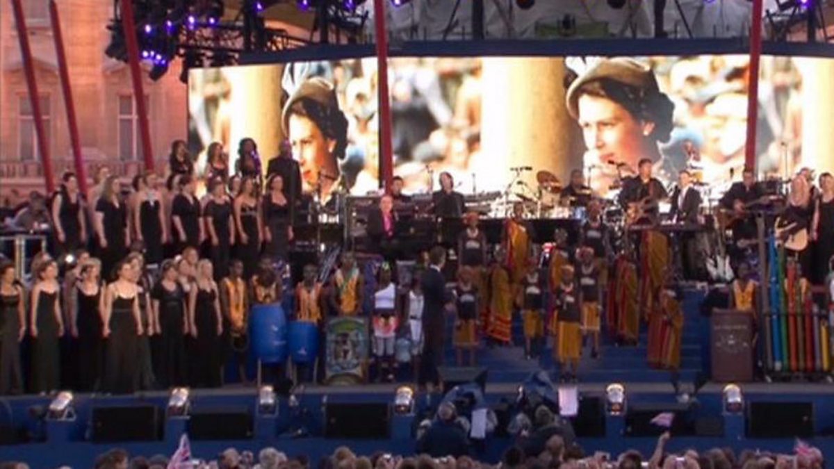 Gary Barlow and Commonwealth musicians perform "Sing" at the Queen’s Diamond Jubilee Concert from Buckingham Palace.