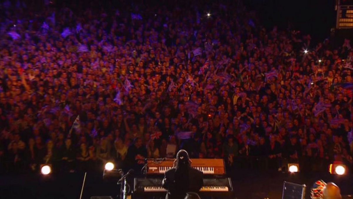 Stevie Wonder performs "Superstition" at the Queen's Diamond Jubilee Concert from Buckingham Palace.