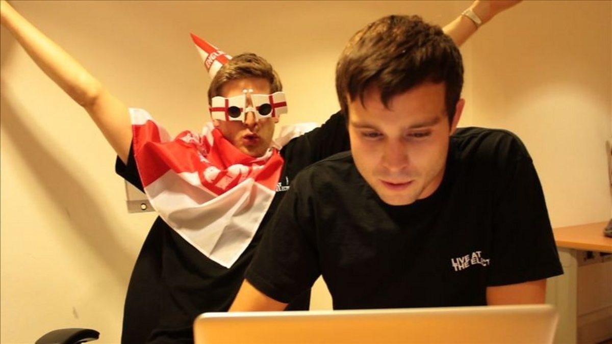 Tom P tries to read some tweets about the show but Tom S is distracted.